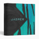 Monogram Tiger Black and Teal Print Pattern 3 Ring Binder