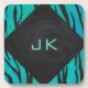 Monogram Tiger Black and Teal Print Pattern Beverage Coaster