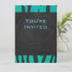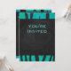 Monogram Tiger Black and Teal Print Pattern Invitation