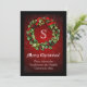 Monogram Traditional Red Christmas Wreath Invitation