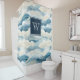 Monogram Tranquil Blue and White Wave Pattern Show Shower Curtain