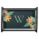 Your family initial is accented with tropical orange heliconia flowers and sage green leaves on dark teal green background (or any color) on this serving tray, a beautiful addition to your home decor or give as a gift for a housewarming, open house or any occasion. MATCHING items in our store.