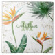 Bring a bit of elegant tropical hospitality to your home all year long whenever you use this chic, modern custom monogram ceramic tile. Stunning, sophisticated, colorful, tropical watercolor birds of paradise flowers, faux gold glitter, and personalized calligraphy script with a bold monogram initial, overlay a chic, airy white background. Personalize with your name and monogram. Available in 2 sizes: 4.25” square or 6” square. Makes a great housewarming gift!