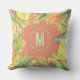 Stylish outdoor fabric pillows feature your monogram surrounded by watercolor tropical flowers, fruits and leaves on a coral pink background, or any color you choose. MATCHING items in our store.