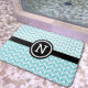 Monogram Turquoise Blue White Chevron Pattern Bold Bath Mat