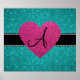 Monogram turquoise glitter pink heart poster