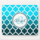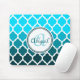 Monogram Turquoise Ombre Moroccan Lattice Pattern Mouse Pad