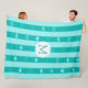 Monogram Turquoise Stripes Modern Heart Pattern Fleece Blanket