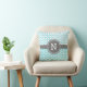 Monogram Turquoise White Chevron Pattern Bold Gray Throw Pillow