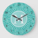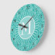 Monogram Turquoise White Spirals - Personalized Large Clock