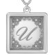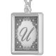 Elegant scrolled Monogrammed Necklace with an embossed look and pewter-like scroll-work.