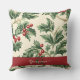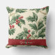 Monogram Vintage Christmas Holly & Berries Pattern Throw Pillow