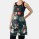 A lovely seasonal apron with monogram or short name, like; Mom, in deep teal hues and red with ornaments and holiday pines.