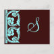 Personalizable monogram postcard with a deep chocolate brown background and a scripty letter and a vintage medieval art element in light teal blue. Use this single letter monogram template for weddings, birthdays, announcements or to add a personal professional touch to your letters. Click Customize It to change fonts or background colors.