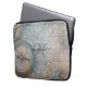 Vintage map with compass monogram design on a grunge blue, gold, and teal background. If you're a lover of old, vintage world maps then this design is for you. Add your monogram and family name or first name to the laptop sleeve and make it uniquely yours.