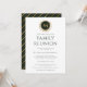 Elegant Monogram Virtual Family Reunion Invitation. Faux gold monogram leaf wreath emblem with dark green center. Personalize with your own family reunion details. Customizable green and charcoal text on ivory white. Back features a faux gold stripe pattern over deep green. Excellent choice for live stream virtual family gathering and get togethers. We invite you to visit our Zazzle store, Simon & Grace, for matching products and more. Please contact us if you require any assistance.