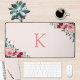 Monogram Watercolor Boho Pink Burgundy Floral Desk Mat