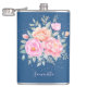 Monogram Watercolor Peonies Roses Pink Blue Floral Flask