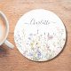 Monogram Watercolor Rustic Pretty Wildflower Field Coaster