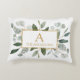 Monogram Watercolor Tropical Green Leaves Accent Pillow
