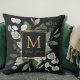 Monogram Watercolor Tropical Green Leaves Black Throw Pillow