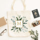 Monogram Watercolor Tropical Green Leaves Tote Bag