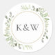 Monogram Watercolour Greenery Wedding Favor Classic Round Sticker