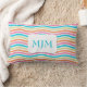 <b>This Bright colorful Monogram Wavy Stripes Lumbar Pillow (13”x21") features a white background with orange, pink, blue and lime wavy lines. There is a white bracket shape in the center for your Monogram. Perfect for any room in your home or office. Customize to suit your needs. Also makes a wonderful housewarming gift! Choose from Polyester or 100% grade A cotton. </b>If you need help customizing this product, please contact me through my store and I'll be happy to help! <br />