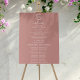 A simple chic floral faux foil monogram pink wedding ceremony program sign. Easy to personalize with your details. Modern boho ceremony program sign editable, customizable, calligraphy handwritten font, simple, elegant.