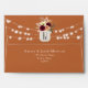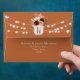 Elegant, rustic, burnt orange terracotta 5x7 envelope for wedding invitation with beautiful monogram - burgundy watercolor flowers in mason jar, pampas grass, string lights and return address.