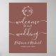 A simple chic foliage faux foil monogram terracotta wedding welcome sign foam board. Easy to personalize with your details. Modern boho wedding welcome sign foam board editable, customizable, calligraphy handwritten font, simple, elegant.