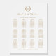 This timeless and elegant seating plan features a simple laurel wreath framing the couple's initials. Inspired by 1920s wedding invitations, it blends classic formality with modern flair, using a traditional serif font, vintage calligraphy script and a clean arrangement. Personalize the template with the couple's names, date, venue, and a chart for twelve tables. You can also customize the background color using the design editor tool. Printed colors: gold and white. Seating layout: 12 tables, 120 guests. Board size: 18"x24". Shop the collection for matching stationery and supplies for sale online!