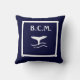 monogram WHALE TAIL ANCHORS WHITE on BLUE Throw Pillow
