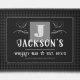Fun personalized custom bar mat. Simple, stylish, elegant black and white design. Fat Font Bold Intial, family name, monogrammed bar mat.
