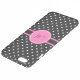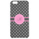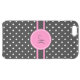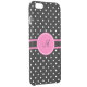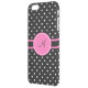 Monogrammed black and white polka dot pattern Uncommon iPhone 6/6s Plus Clearly™ Deflector Case. White polka dots on black and in the middle there ia a black band with a hot pink border and a hot pink circle to add your monogram.