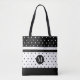 Tote Bag. Featured in a white and black polka dot design ready for you to personalize. ⭐This Product is 100% Customizable. Graphics and / or text can be added, deleted, moved, resized, changed around, rotated, etc... 99% of my designs in my store are done in layers. This makes it easy for you to resize and move the graphics and text around so that it will fit each product perfectly. ⭐ (Please be sure to resize or move graphics if needed before ordering) You can also "TRANSFER DESIGN" on other Zazzle products and adjust the design to fit most of Zazzle items. (button is down on the right side of the page) Some of the text graphics have ready to fill in the box(es) or you can Click on the "CUSTOMIZE" button to add, move, delete, resize, background color or change any of the font or graphics. The design is made with high resolution vector and/or digital graphics for a professional print. ⭐NOTE: (THIS IS A PRINT. All zazzle product designs are "prints" unless otherwise stated under "About This Product" area) The design will be printed EXACTLY like you see it on the screen and on the product...so please make sure when you do your changes on the resizing of any of the graphics or text that it fits in the areas correctly and that your spelling and wording is how you like it to be in size, color and font. If you have any questions about the "DESIGN" or need help please contact me at siggyscott@comcast.net or visit my store link: https://www.zazzle.com/store/designsbydonnasiggy?rf=238713599140281212 (Copy and Paste) I'll be happy to help. ⭐ All other questions (shipping, refund, the printing, the product, etc...) please contact Zazzle or the Maker ⭐DIRECTLY⭐. Thank you for the support and stopping by my store - DesignsbyDonnaSiggy. © Donna Siegrist