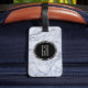 Monogram White Faux Marble Stone Pattern Luggage Tag