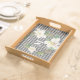 Monogram White Floral Magnolia Black Gingham Check Serving Tray