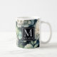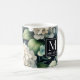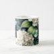 White hydrangea botanical art mug with customizable name and monogram templates.