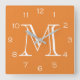 Monogram White Numbers On Orange wccnt Square Wall Clock