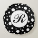 Monogram White on Black Polka Dot Pattern Round Pillow