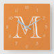 Monogram White Script Numbers On Orange wccnt Square Wall Clock