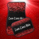 Upgrade your vehicle's interior with our stylish and durable monogram car floor mats. Each mat features the heartfelt message "Love Lives Here" in white text, providing a striking contrast against a bold black background. The top and bottom edges are adorned with a shimmering red glitter border, adding a touch of glamour and personality to your car.