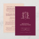 Heart crown on a crest of entwined berries and leaves monogram wedding guest information enclosure card in a deep dark wine red and pale peach. A simple elegant wedding information card ideal to help your guest understand how to reach your wedding destination and see the schedule, accommodation information and social media hashtag details of the wedding day. Personalize with your own details. Other matching items are also available. If you need assistance please contact me. © Original art and design by Sarah Trett exclusively for www.mylittleedenweddings.com
