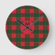 Monogram Winter Holiday Tartan pattern Scottish Round Clock
