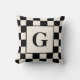 Stylish pillow features a large custom monogram in the center within an off-white square with a black and cream checkered border pattern. Add your initial in the sidebar. Alternating black and beige squares form the bold geometric pattern around the edges.