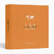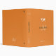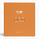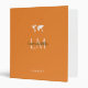 A simple orange binder with the image of a small map of the world, personalized with your own name, initials, and subject