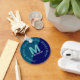 monogram with custom text on two tone blue keychain