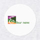 Children's identification stickers featuring a name. The design includes a brightly colored letter E, prominently displayed against a clean, white backdrop. These labels are specifically designed for kids and personalized with their name. The vibrant letter E stands out clearly on the white background.