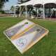 A modern and elegant cornhole set with fashionable typography. Add your initials.